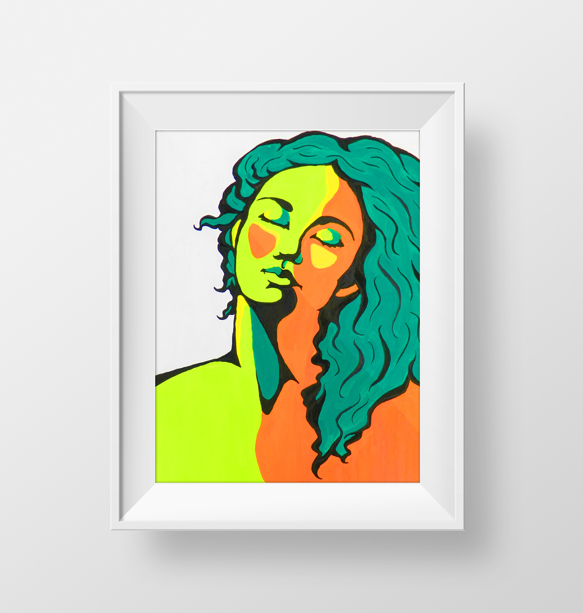 A painted self portrait that was intended to mimic more pop art and graphic art styles. This piece was created using gouache and india ink on illustration board.